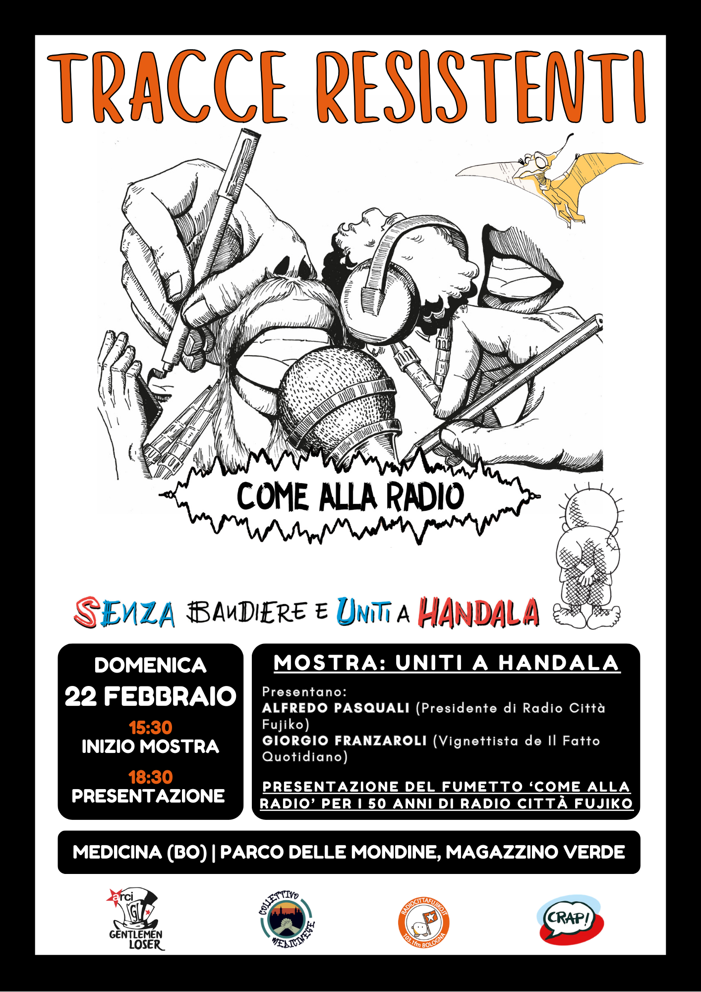 L’iniziativa proseguirà con la presentazione del libro illustrato “Come alla radio”, pubblicato in occasione del cinquantesimo anniversario di Radio Città Fujiko di Bologna, realtà storica dell’informazione indipendente.