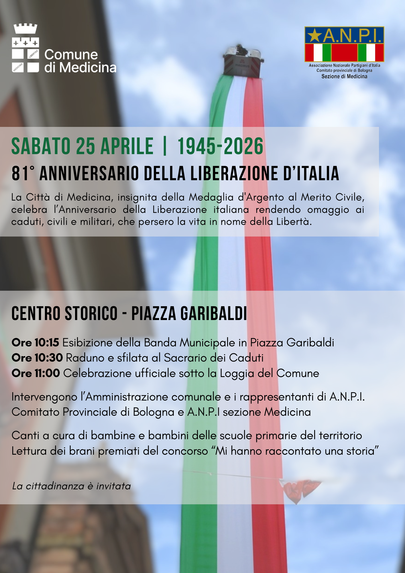 Intervengono l’Amministrazione comunale e i rappresentanti dell’A.N.P.I., Comitato Provinciale di Bologna e sezione di Medicina.