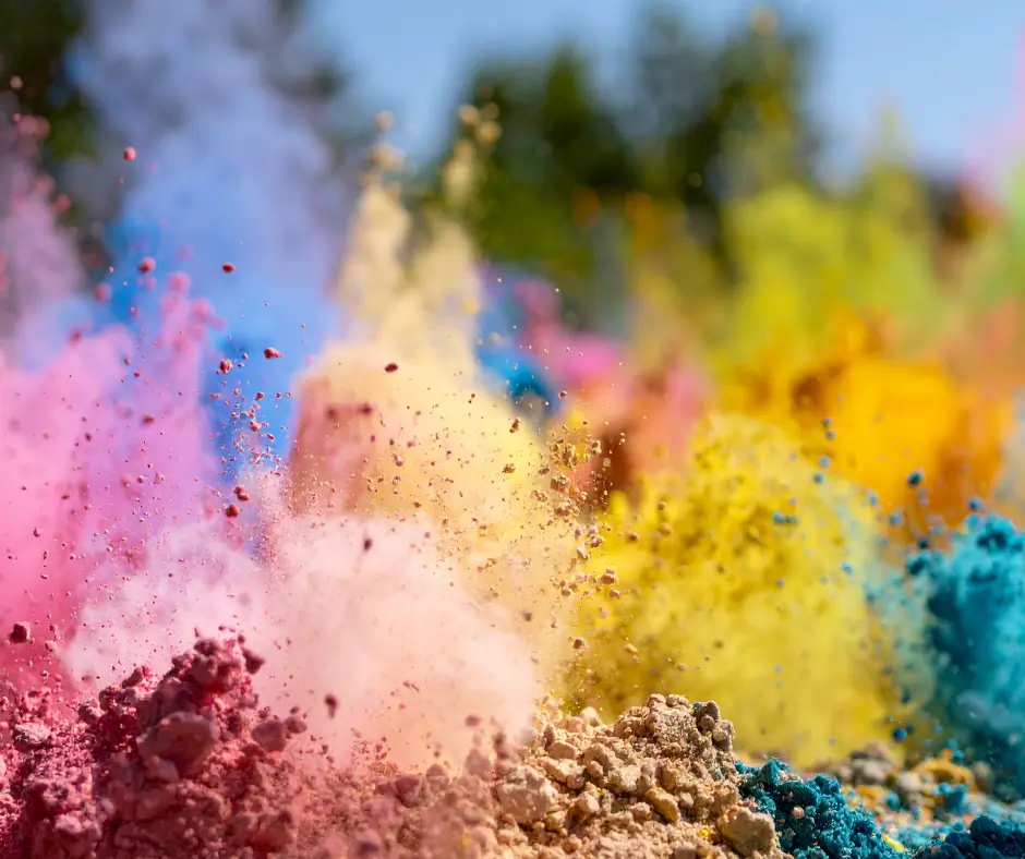 Passeggiata tra nuvole di colori lungo un percorso facile nel paese, con polveri colorate per tutto il tragitto.