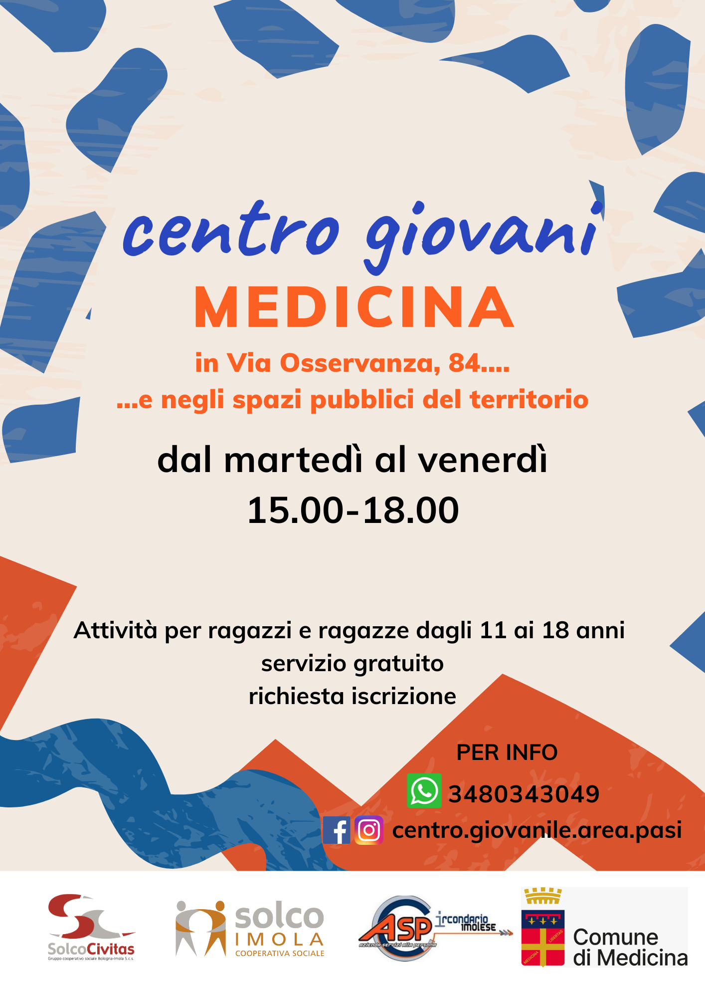 Il Centro di aggregazione giovanile del Comune di Medicina, gestito dall'Azienda Servizi alla Persona, in appalto alla Coop SolcoProssimo, del Consorzio SolcoImola, in collaborazione con l'Associazione La Strada è uno spazio rivolto ai giovani, dagli 11 ai 18 anni.