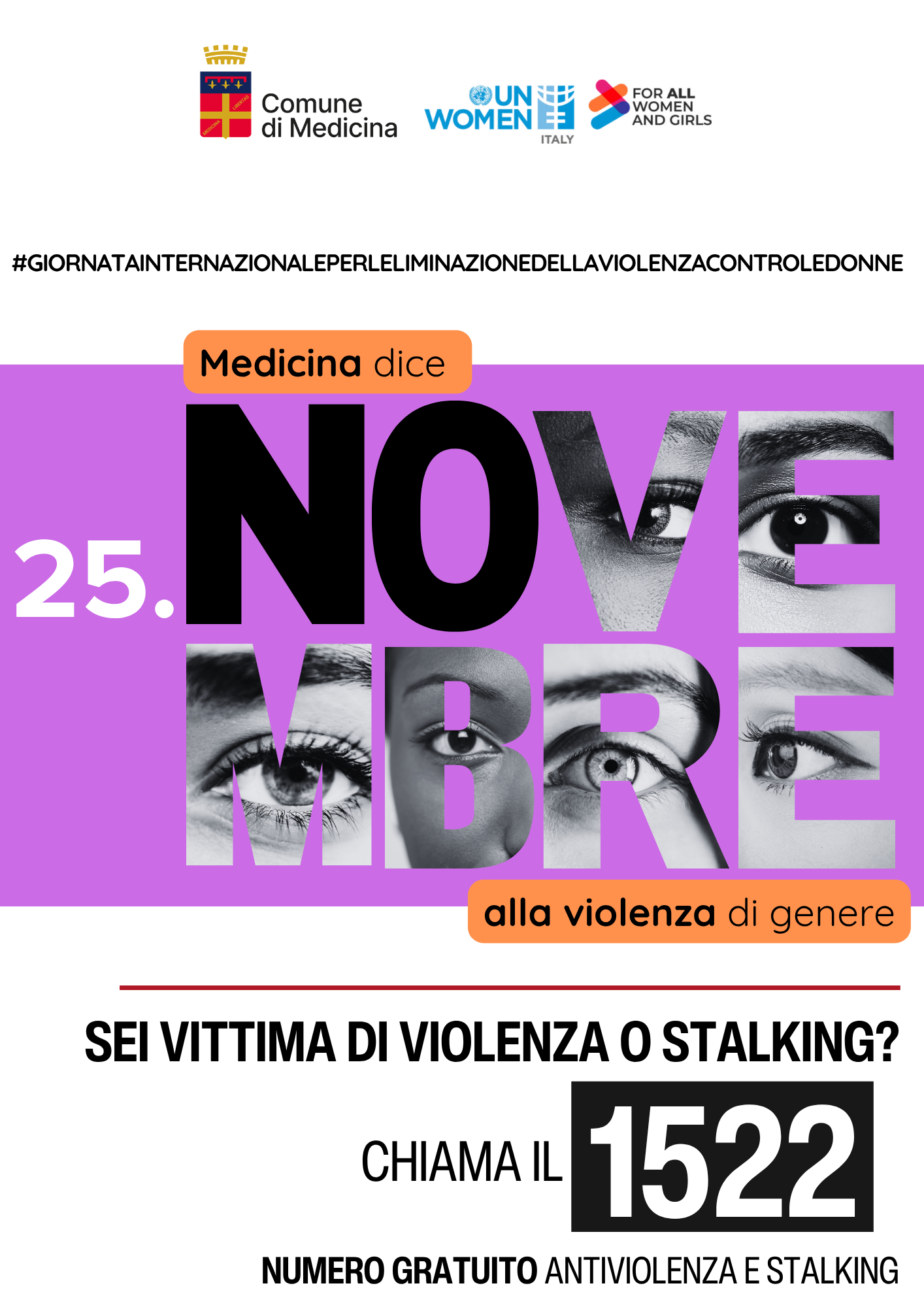 In occasione del 25 novembre, Giornata internazionale per l’eliminazione della violenza contro le donne, il Comune di Medicina promuove un calendario di iniziative volte a sensibilizzare la cittadinanza sul tema della violenza di genere e a sostenere una cultura del rispetto, dell’ascolto, dei diritti e della parità di genere.