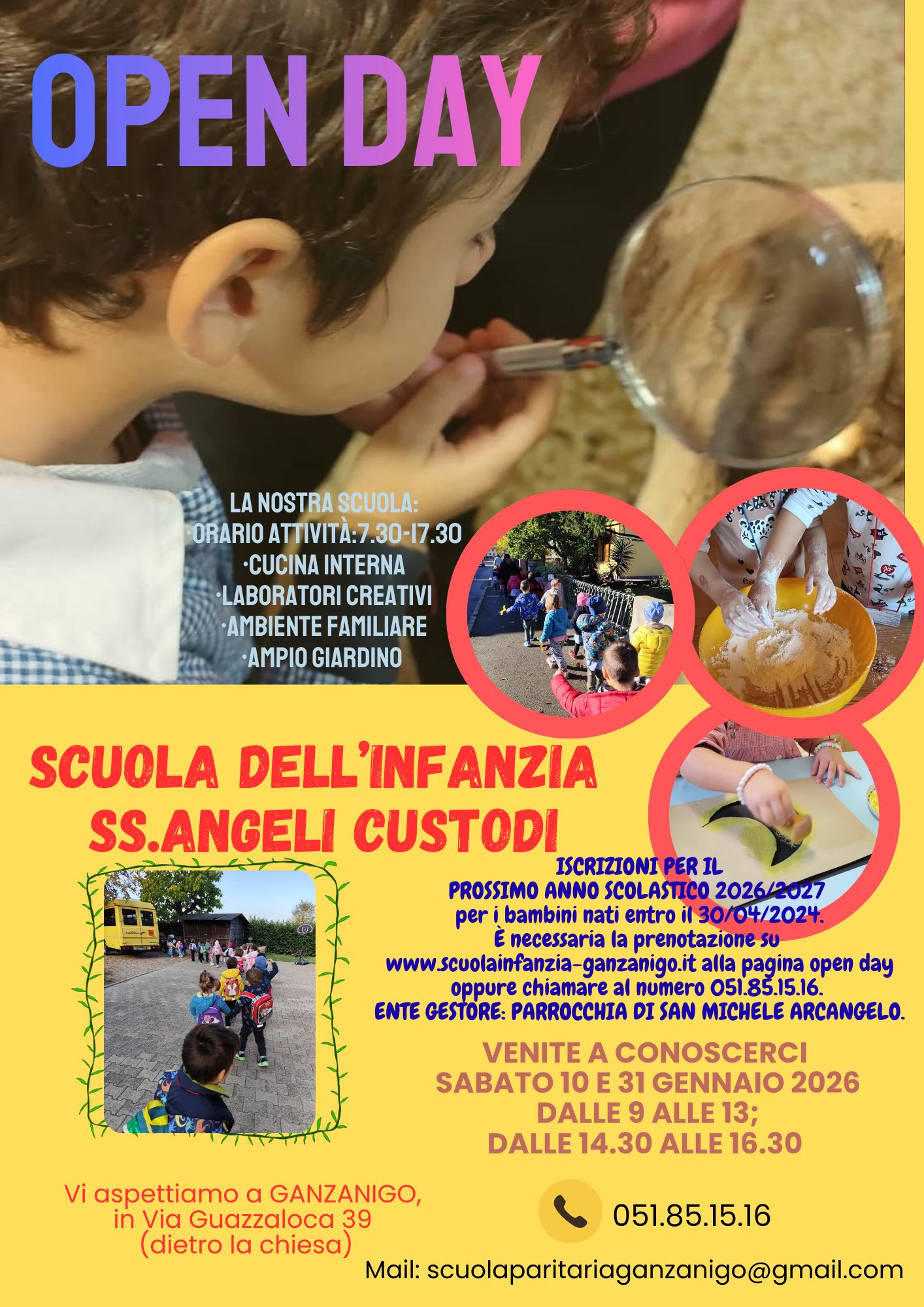www.scuolainfanzia-ganzanigo.it alla pagina open day o chiama lo 051 851516