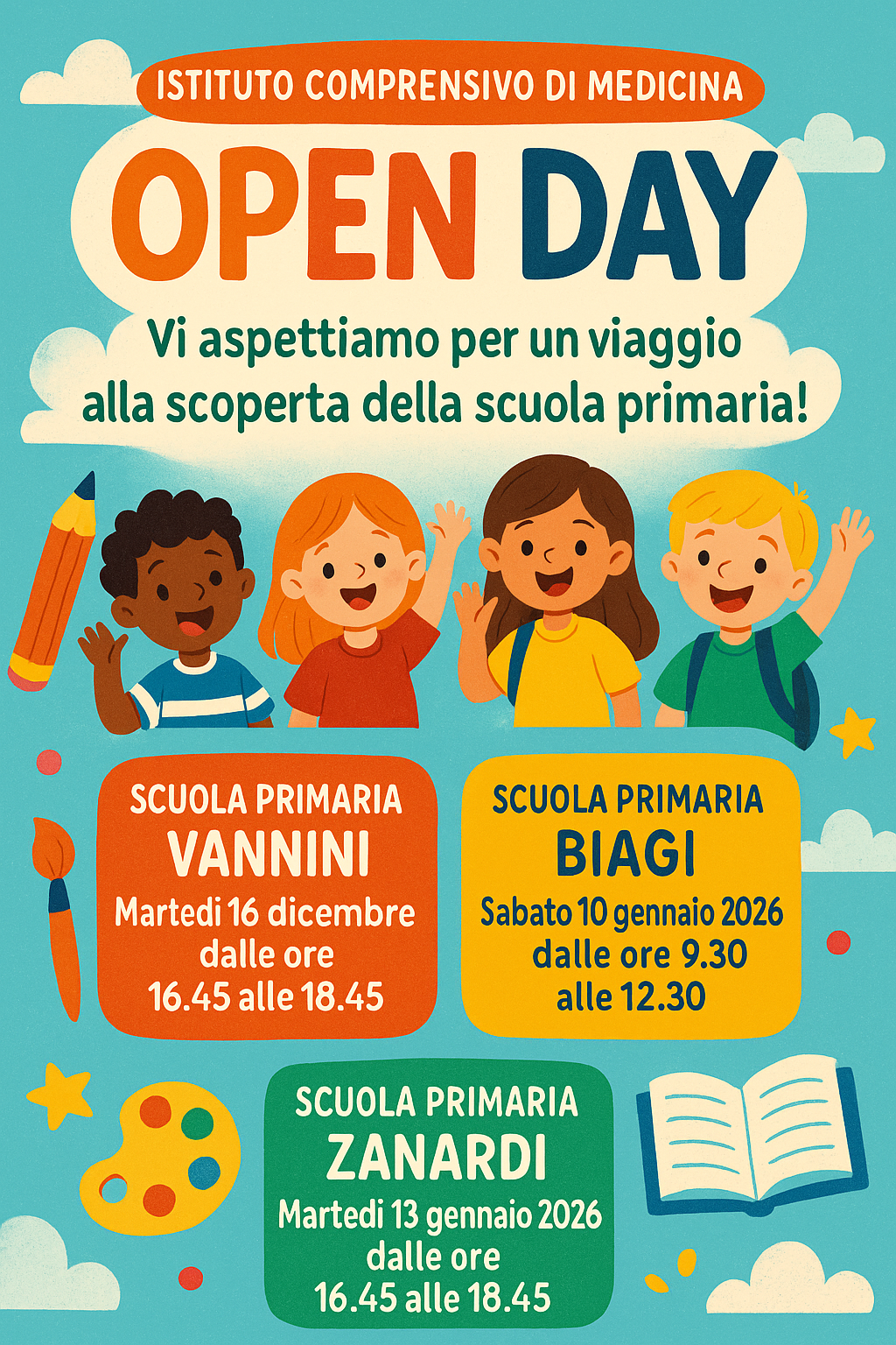 - Scuola Primaria Biagi: sabato 10 gennaio 2026 dalle 9.30 alle 12.30